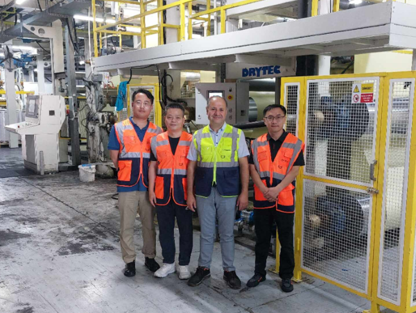 2nd Time – July 2024 | Juyou Factory, China After the exhibition, Mr. Mehmet took the initiative to visit Juyou's factory in China. He reviewed our production processes and quality system. During the visit, he informed us that Frimpeks' new plant would start operation in 2026, and that they planned to purchase new slitting equipment in 2025.